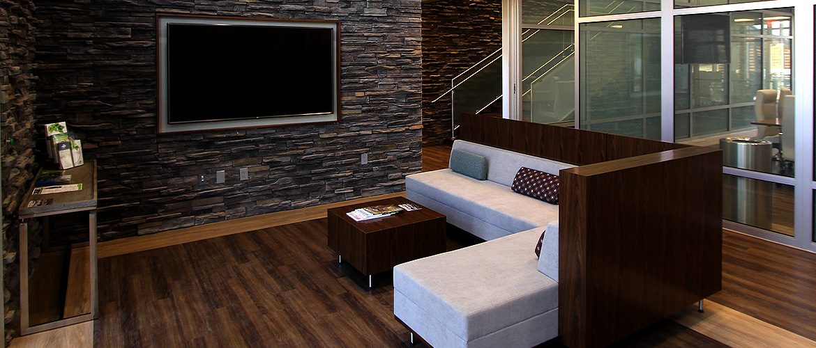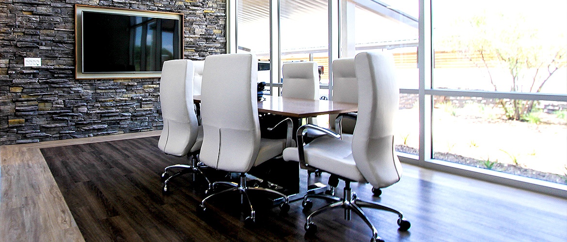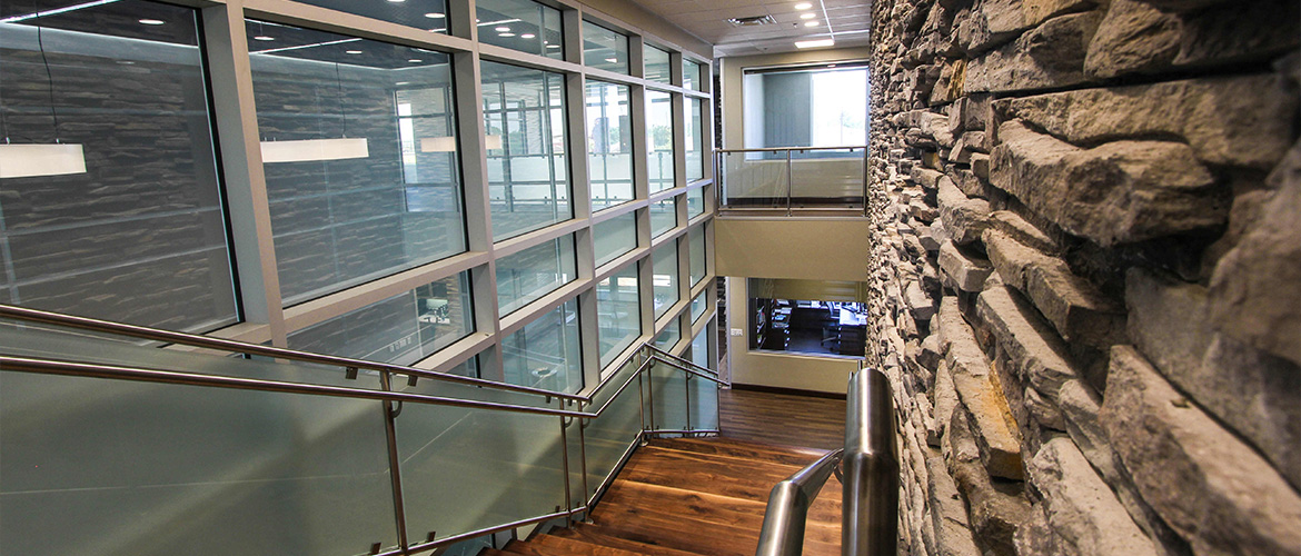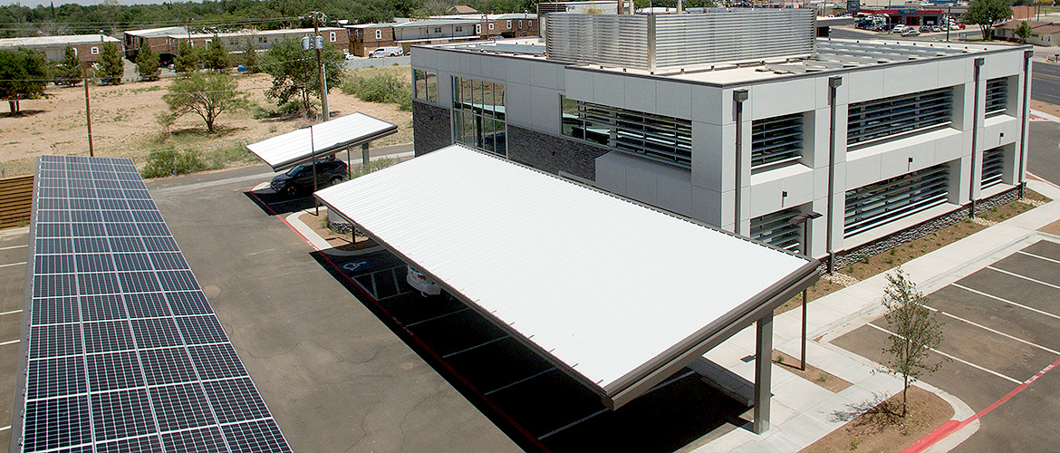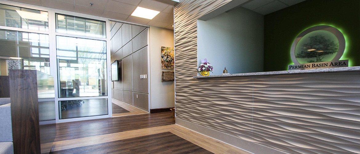 The Permian Basin Area Foundation project is a luxury, two-story office featuring a rooftop patio, solar panels and desert-style landscaping. The interior lobby is open to the second floor and includes veneer rock and Soelberg paneling walls, indoor landscaping with live plants, a reception area with granite counters, LED backlit logo and unique wall treatments and a wide, decorative staircase with walnut wood steps and stainless steel railing and frosted glass. There are also two medium-sized breakrooms, 12 large offices with expansive windows, wooden doors and full glass views, 3 small to large conference rooms featuring electrified privacy glass, wood-slat ceilings and decorative lighting and ADA-compliant bathrooms with LED-backlit mirrors and decorative vantites. The exterior is dressed with veneer rock and EFIS and louvers (shades) on most windows. The project is finished with paved customer parking, counter-levered covered employee parking, desert-style landscaping and a high-tech LED monument sign.
