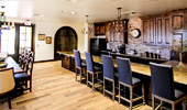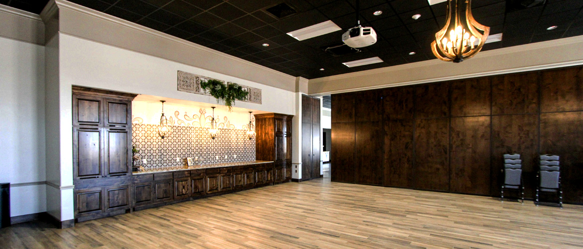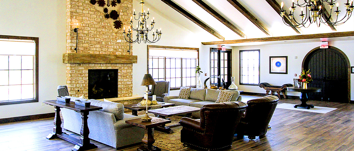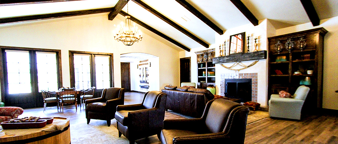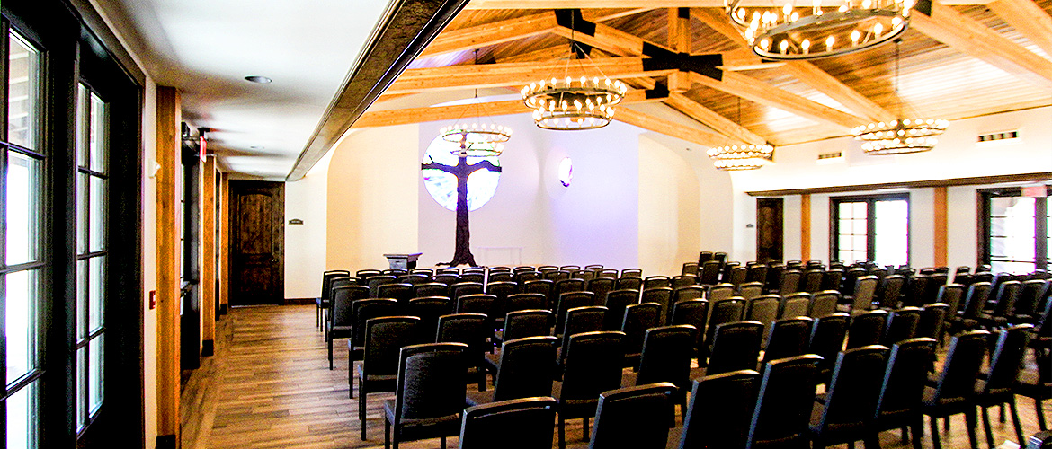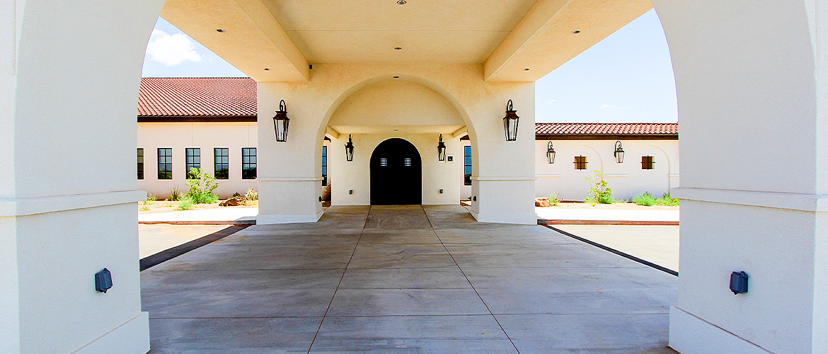 The Way Retreat Center is a large project consisting of multiple buildings and out-buildings constructed in a Spanish mission theme with a spacious lobby, exquisite chapel, a large hacienda area and four casitas within walking distance of the chapel. The lobby features vaulted ceilings with wood beams, a reclaimed brick fireplace, beautiful chaneliers and accent lighting, multiple offices, a full commercial kitchen, a vast dining room with wood-style ceramic flooring and fireplace, ADA-compliant bathrooms and a large meeting room with partitions and a catering buffet that opens into the dining room. The La Hacienda area presents a large bridal suite with a bedroom and four guest bedrooms with their own full bathrooms and access to a shared outdoor living space, a full dressing room with mirrors, a private shower and makeup room with vanities, a private courtyard and a large living area with attached kitchen and dining space featuring vaulted ceilings, a fireplace and chandeliers. Each casita contains vinyl plank flooring, five bedrooms and bathrooms and a living room with kitchenette. The chapel has ceramic wood-style flooring, a vaulted ceiling with exposed-wood trusses, chandelier lighting, three round stained-glass windows and a foyer with vaulted ceilings, exposed-wood trusses and stained-glass window.