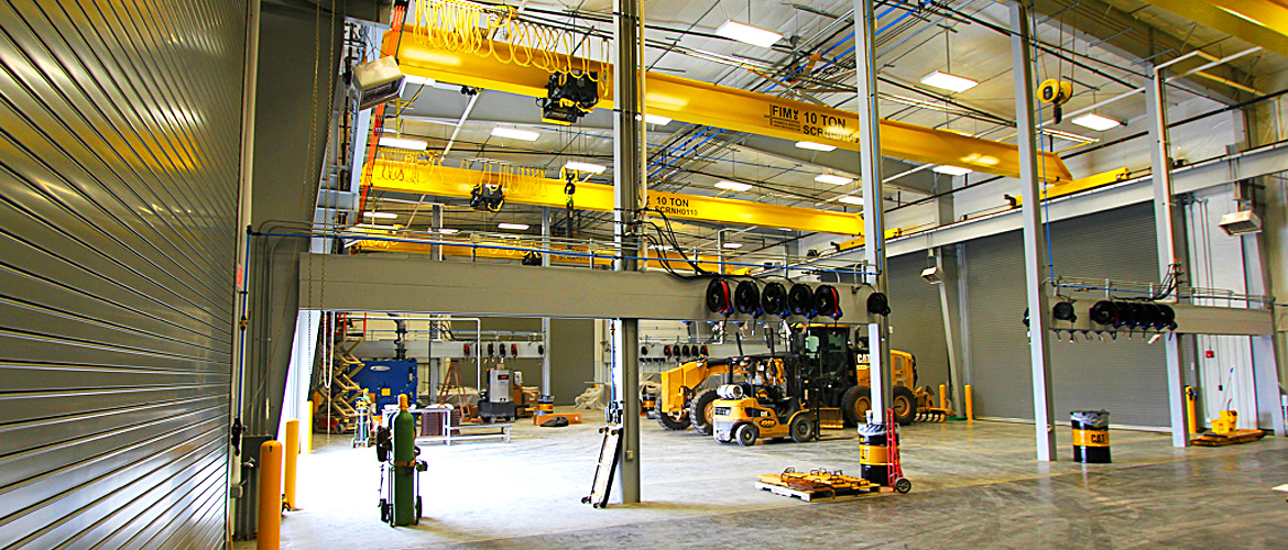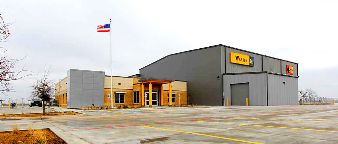 The Warren Cat project in San Angelo features two buildings for offices, service bays, wash bay, parts department, training classroom and more. The main building is equipped with LED lighting throughout, Energy-Star HVAC systems, coffee bar, carpet tile, two ADA-compliant bathrooms with ceramic tile flooring and wainscot, a conference room and a large training classroom. The service shopt area includes six offices, two bathrooms with lockers and a large breakroom. The parts warehouse has large fans, natural gas radiant heaters and concrete flooring. The service shop has a 10" floor with heavy-duty, diamond plate metallic floor hardener and 11 bay doors. The exterior is completed with CMU and EFIS façades, designer ACM front entrance and accent wall along with PBR paneling and a standing seam metal roof. The buildings are insulated with a Proliner energy code insulation system.