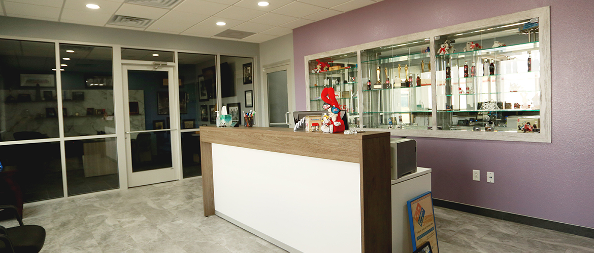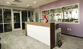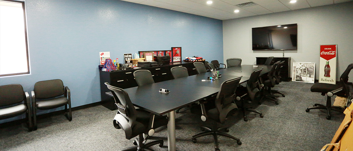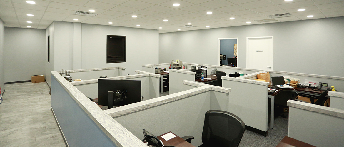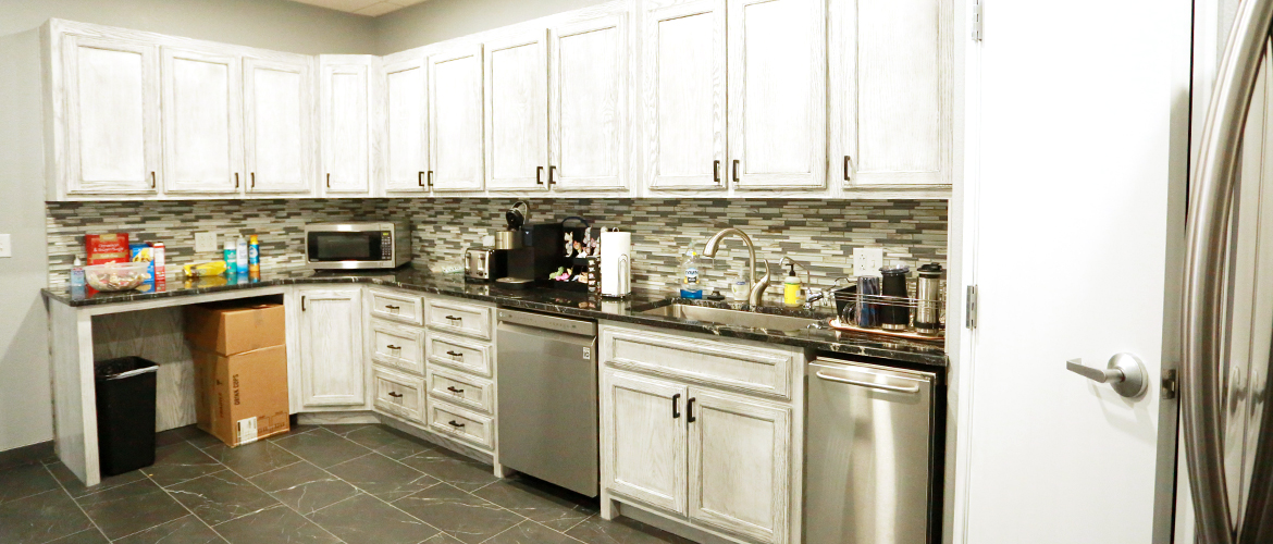 The interior also showcases a custom break room with white-washed cabinets, granite countertops and a tile backsplash. Amenities include a small pantry, ice maker, dishwasher, fridge and R/O water service. Attached to the facility is a large 1,600 square foot warehouse with clear sealed concrete floors and a secured caged paperwork storage system.