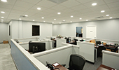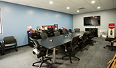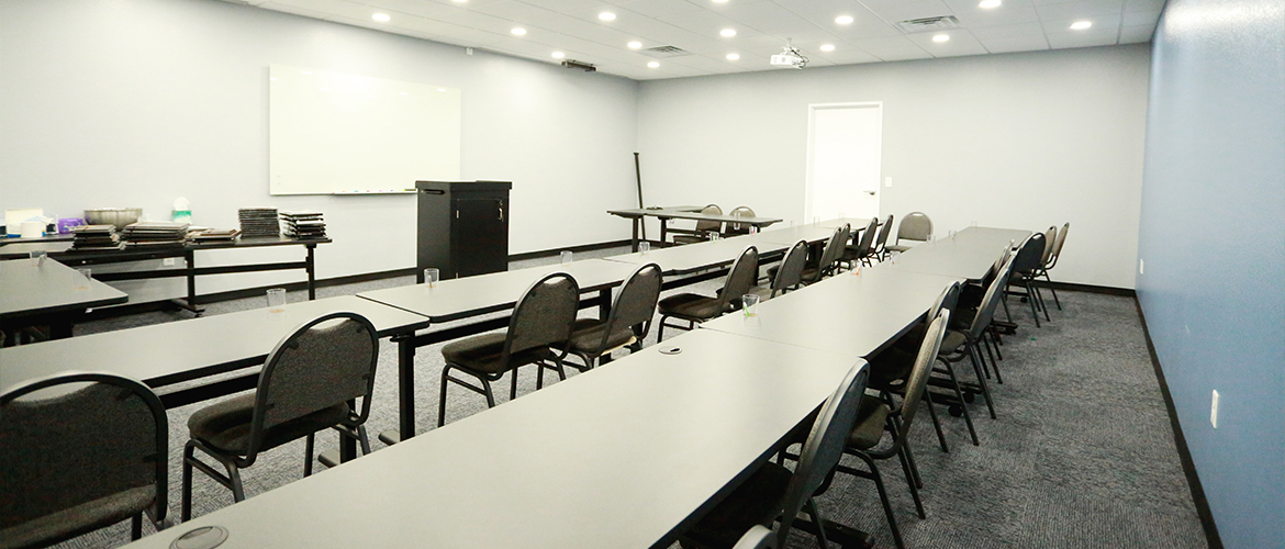 The interior features marble tile flooring throughout the main traffic areas, a custom-build receptionist counter, a built-in glass trophy case with mirrored backing and LED lighting. There are six medium-sized offices, a large conference room with A/V capabilities, a large classroom with A/V connections and two large custom restrooms with white-washed vanities and full ceramic tile walls and flooring.