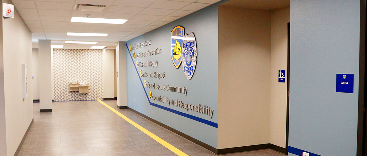 The Odessa Police Department project is a renovation of an old building that was once a fire station and haunted house before being vacant. The project was divided into three phases. Phase one involved creating a special vehicles storage area. Phase 2 required an attached building for elevator access. Phase 3 included the complete building demo and remodel.
