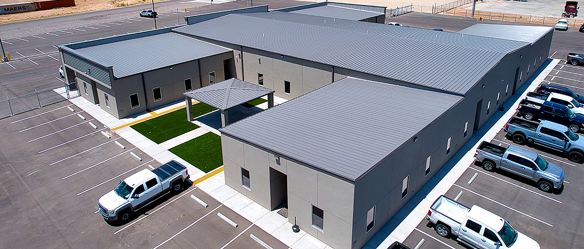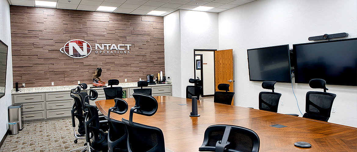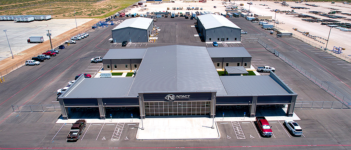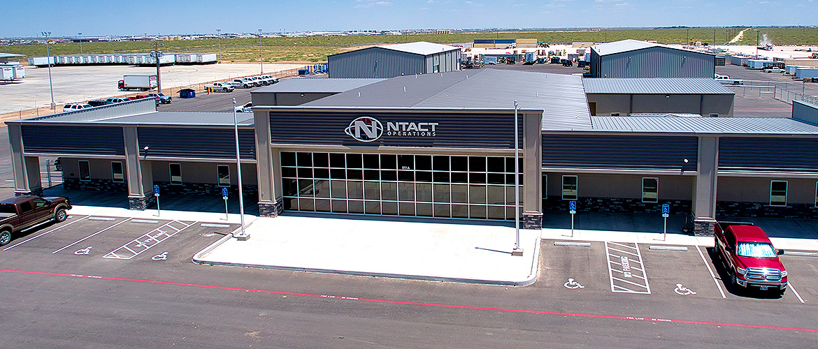 The NTact Operations - Odessa project constists of a corporate office building with two separate shop buildings on the property. The corporate office contains multiple offices and meeting rooms. The high ceilings feature large suspended ceiling grids with LED lighting and smart light controls. The HVAC system is a VRF system with Heat Recovery for higher efficiency. Custom flooring is installed throughout along with custom cabinets and decorative wooden veneer walls.
