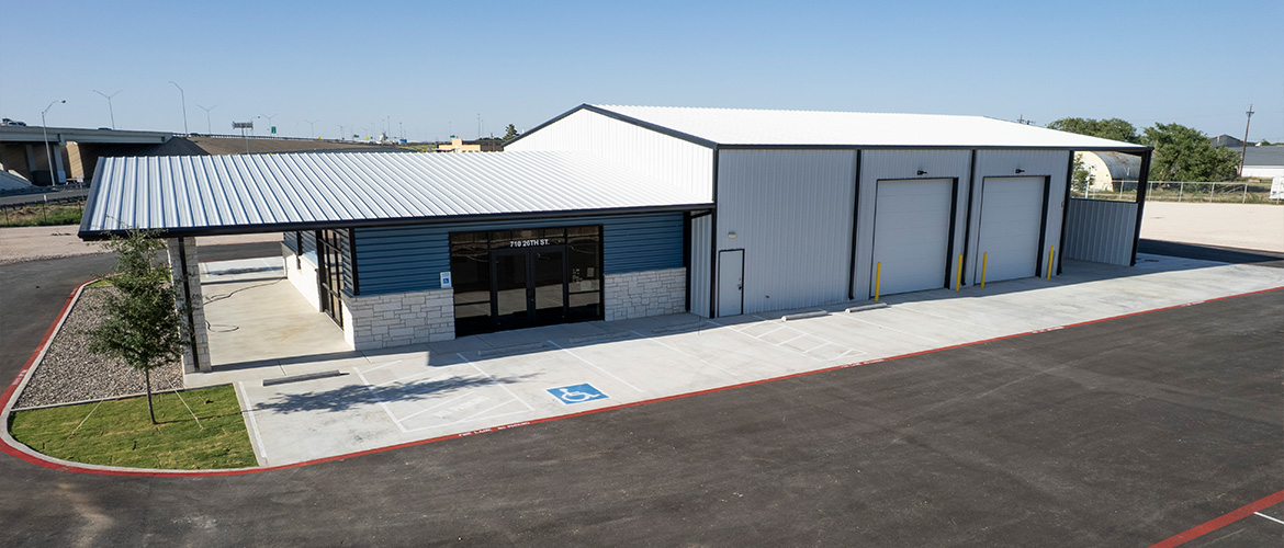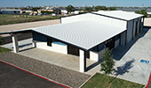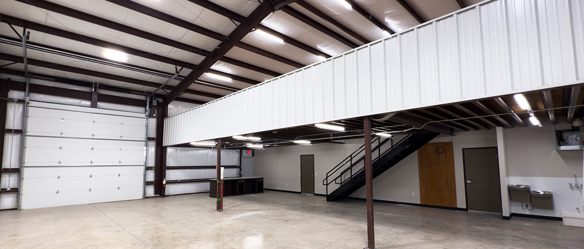 The Alpha & Omega Equipment Sales project is a custom metal building with offices, a main sales floor, a large warehouse area with a mezzanine and a 1,200 ft2 wash bay. The included front canopy and wide 8'x8' double entry door is ideal for featuring available equipment on the showroom floor and the custom large arched reception counter is a beautiful and welcoming area for customers.